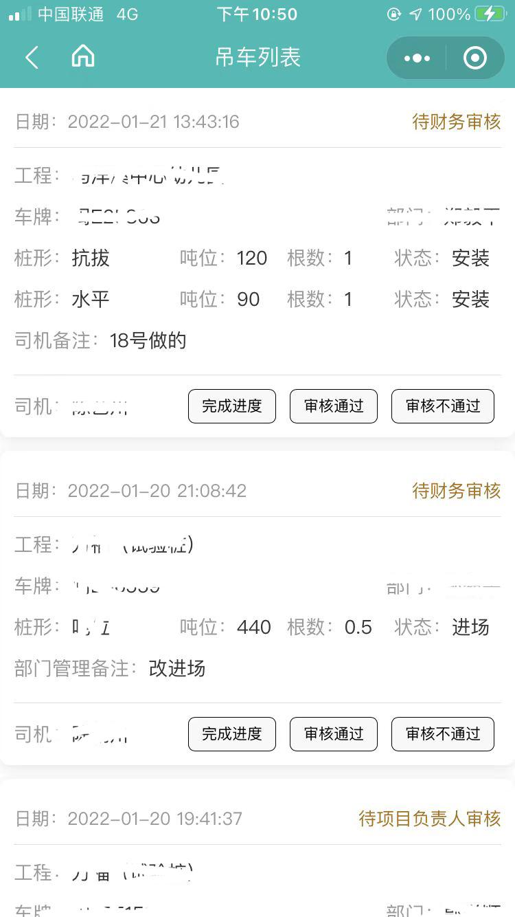 某安裝工程公司辦公系統(tǒng),定制開發(fā)型OA系統(tǒng),管理員使用電腦管理分配倉管、運輸人員、吊車人員、項目經理、部門主管等角色 ,相應角色人員都用小程序進行辦公管理。極大提高了此安裝工程的辦公效率。